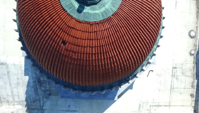 Aerial inspection of courthouse dome discovers missing tile not visible from ground level